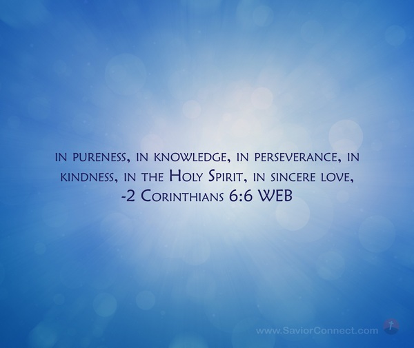 in pureness, in knowledge, in perseverance, in kindness, in the Holy Spirit, in sincere love, -2 Corinthians 6:6 WEB