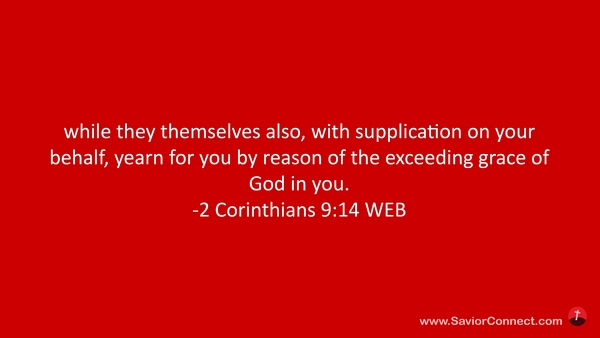 while they themselves also, with supplication on your behalf, yearn for you by reason of the exceeding grace of God in you. -2 Corinthians 9:14 WEB