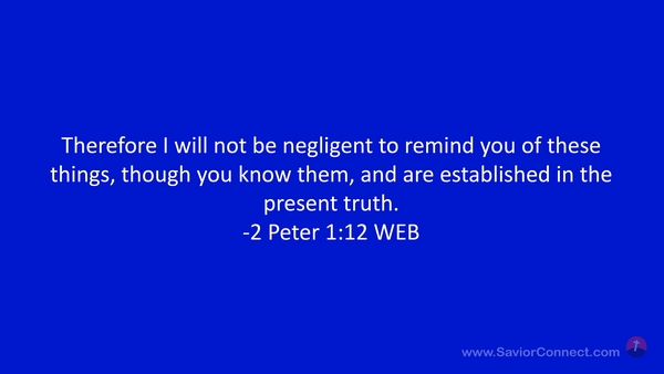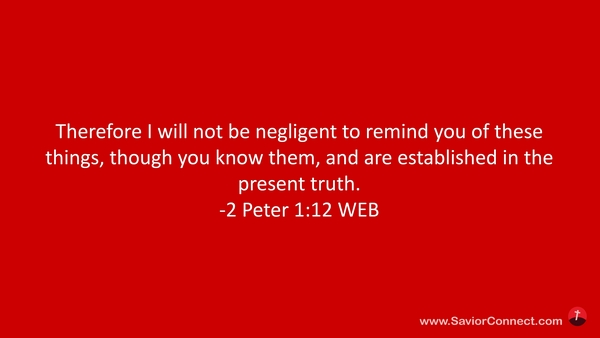 Therefore I will not be negligent to remind you of these things, though you know them, and are established in the present truth. -2 Peter 1:12 WEB