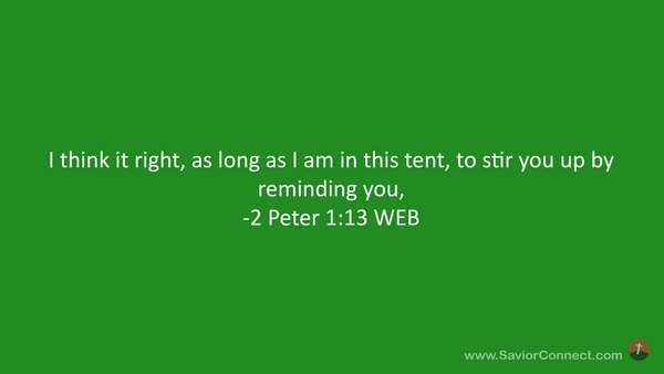I think it right, as long as I am in this tent, to stir you up by reminding you, -2 Peter 1:13 WEB