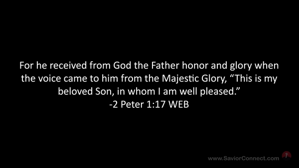 For he received from God the Father honor and glory when the voice came to him from the Majestic Glory, “This is my beloved Son, in whom I am well pleased.” -2 Peter 1:17 WEB