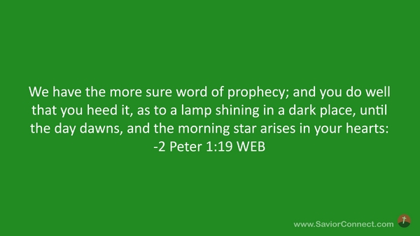 We have the more sure word of prophecy; and you do well that you heed it, as to a lamp shining in a dark place, until the day dawns, and the morning star arises in your hearts: -2 Peter 1:19 WEB