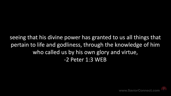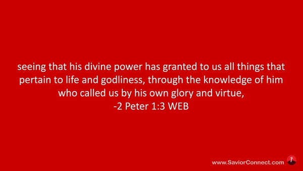 seeing that his divine power has granted to us all things that pertain to life and godliness, through the knowledge of him who called us by his own glory and virtue, -2 Peter 1:3 WEB