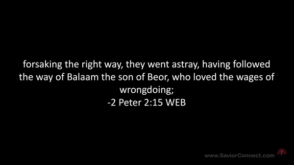 forsaking the right way, they went astray, having followed the way of Balaam the son of Beor, who loved the wages of wrongdoing; -2 Peter 2:15 WEB