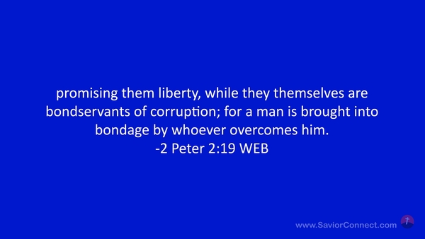 promising them liberty, while they themselves are bondservants of corruption; for a man is brought into bondage by whoever overcomes him. -2 Peter 2:19 WEB