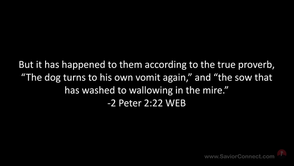 But it has happened to them according to the true proverb, “The dog turns to his own vomit again,” and “the sow that has washed to wallowing in the mire.” -2 Peter 2:22 WEB
