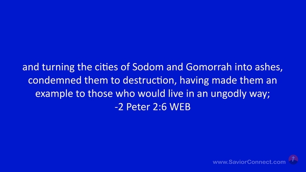 and turning the cities of Sodom and Gomorrah into ashes, condemned them to destruction, having made them an example to those who would live in an ungodly way; -2 Peter 2:6 WEB
