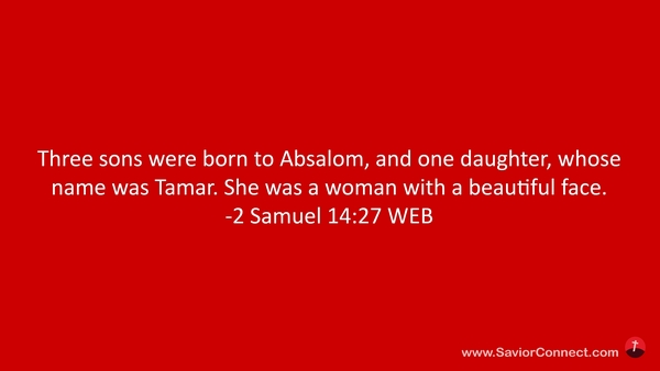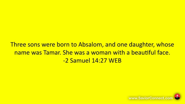 Three sons were born to Absalom, and one daughter, whose name was Tamar. She was a woman with a beautiful face. -2 Samuel 14:27 WEB