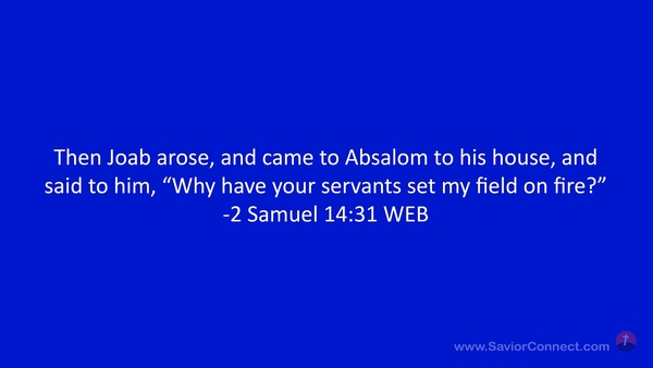 Then Joab arose, and came to Absalom to his house, and said to him, “Why have your servants set my field on fire?” -2 Samuel 14:31 WEB