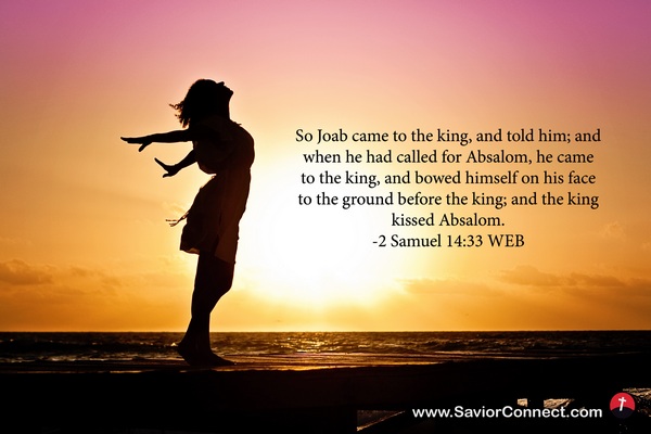 So Joab came to the king, and told him; and when he had called for Absalom, he came to the king, and bowed himself on his face to the ground before the king; and the king kissed Absalom. -2 Samuel 14:33 WEB