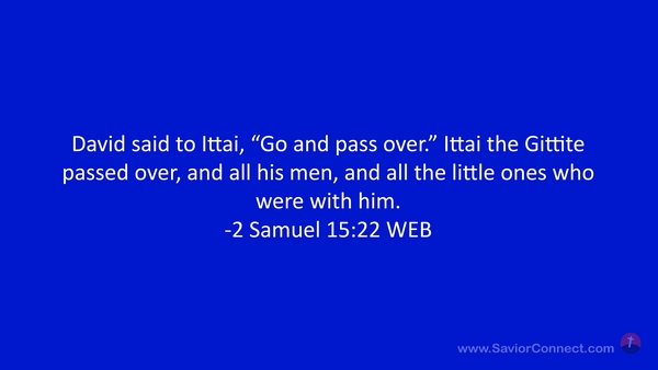 David said to Ittai, “Go and pass over.” Ittai the Gittite passed over, and all his men, and all the little ones who were with him. -2 Samuel 15:22 WEB
