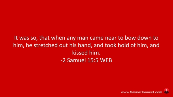 It was so, that when any man came near to bow down to him, he stretched out his hand, and took hold of him, and kissed him. -2 Samuel 15:5 WEB