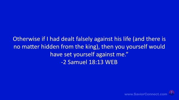 Otherwise if I had dealt falsely against his life (and there is no matter hidden from the king), then you yourself would have set yourself against me.” -2 Samuel 18:13 WEB