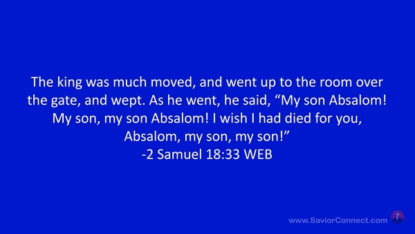 The king was much moved, and went up to the room over the gate, and wept. As he went, he said, “My son Absalom! My son, my son Absalom! I wish I had died for you, Absalom, my son, my son!” -2 Samuel 18:33 WEB
