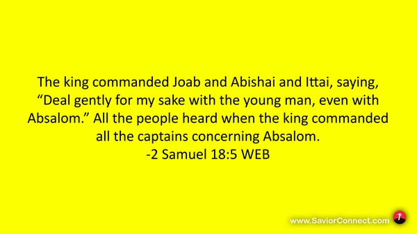 The king commanded Joab and Abishai and Ittai, saying, “Deal gently for my sake with the young man, even with Absalom.” All the people heard when the king commanded all the captains concerning Absalom. -2 Samuel 18:5 WEB