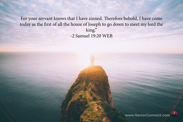 For your servant knows that I have sinned. Therefore behold, I have come today as the first of all the house of Joseph to go down to meet my lord the king.” -2 Samuel 19:20 WEB