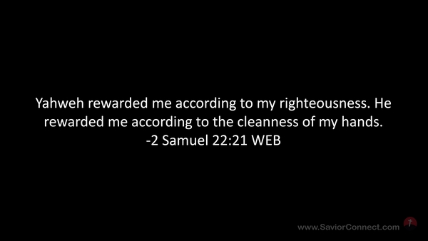 Yahweh rewarded me according to my righteousness. He rewarded me according to the cleanness of my hands. -2 Samuel 22:21 WEB