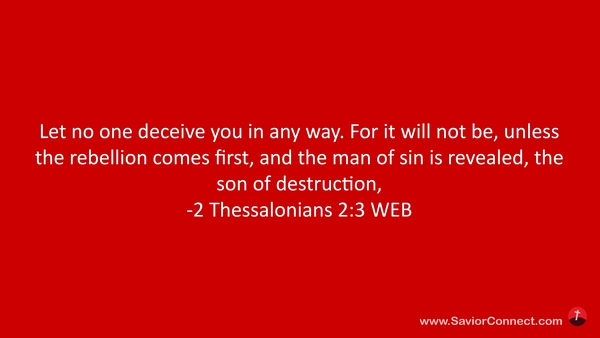 Let no one deceive you in any way. For it will not be, unless the rebellion comes first, and the man of sin is revealed, the son of destruction, -2 Thessalonians 2:3 WEB