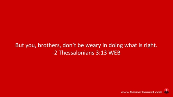 But you, brothers, don’t be weary in doing what is right. -2 Thessalonians 3:13 WEB