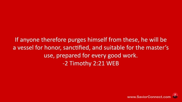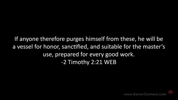 If anyone therefore purges himself from these, he will be a vessel for honor, sanctified, and suitable for the master’s use, prepared for every good work. -2 Timothy 2:21 WEB