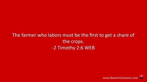 The farmer who labors must be the first to get a share of the crops. -2 Timothy 2:6 WEB