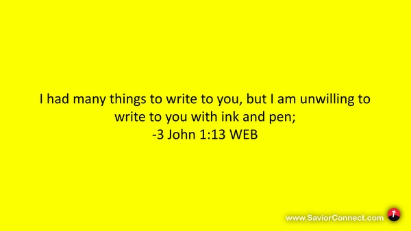 I had many things to write to you, but I am unwilling to write to you with ink and pen; -3 John 1:13 WEB