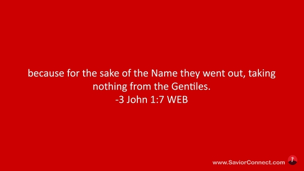because for the sake of the Name they went out, taking nothing from the Gentiles. -3 John 1:7 WEB
