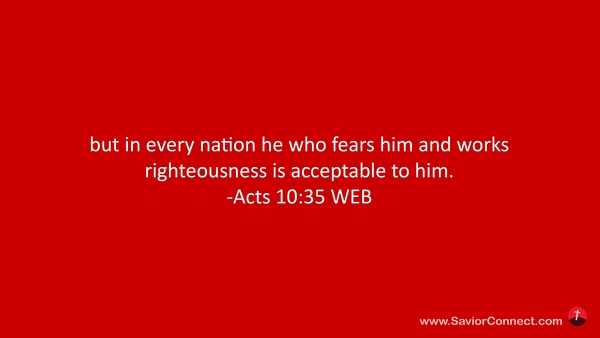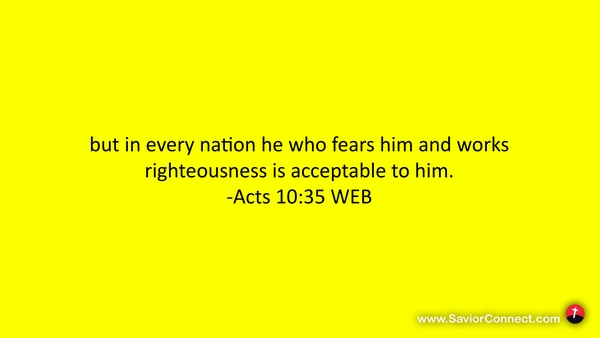 but in every nation he who fears him and works righteousness is acceptable to him. -Acts 10:35 WEB