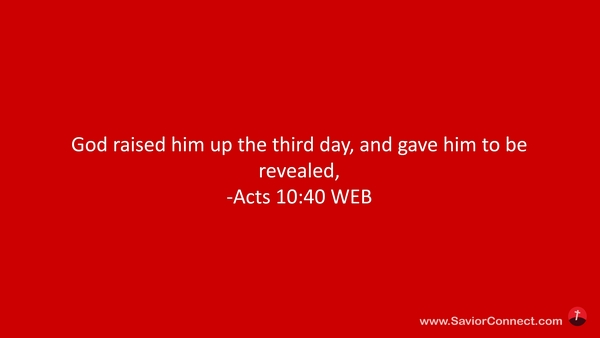 God raised him up the third day, and gave him to be revealed, -Acts 10:40 WEB