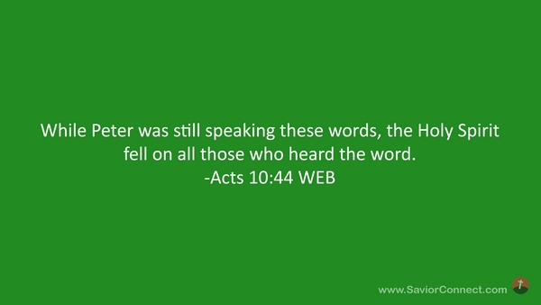 While Peter was still speaking these words, the Holy Spirit fell on all those who heard the word. -Acts 10:44 WEB