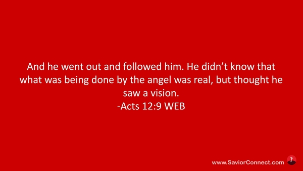 And he went out and followed him. He didn’t know that what was being done by the angel was real, but thought he saw a vision. -Acts 12:9 WEB
