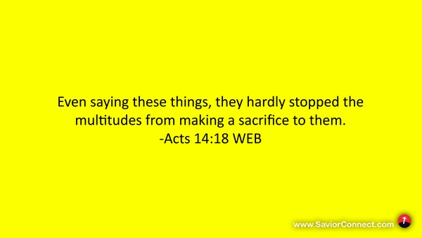Even saying these things, they hardly stopped the multitudes from making a sacrifice to them. -Acts 14:18 WEB