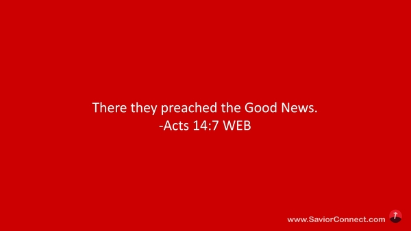 There they preached the Good News. -Acts 14:7 WEB