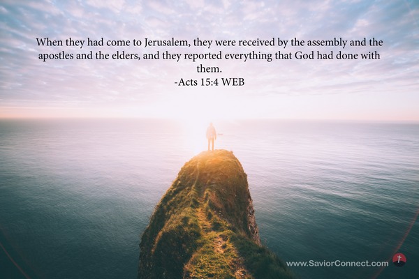 When they had come to Jerusalem, they were received by the assembly and the apostles and the elders, and they reported everything that God had done with them. -Acts 15:4 WEB