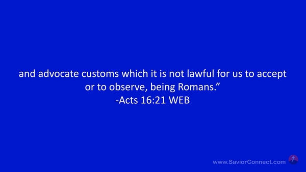 and advocate customs which it is not lawful for us to accept or to observe, being Romans.” -Acts 16:21 WEB