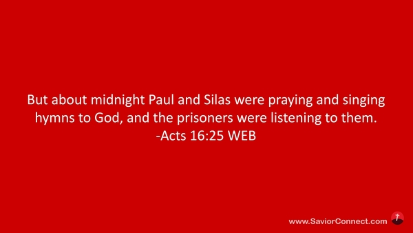 But about midnight Paul and Silas were praying and singing hymns to God, and the prisoners were listening to them. -Acts 16:25 WEB