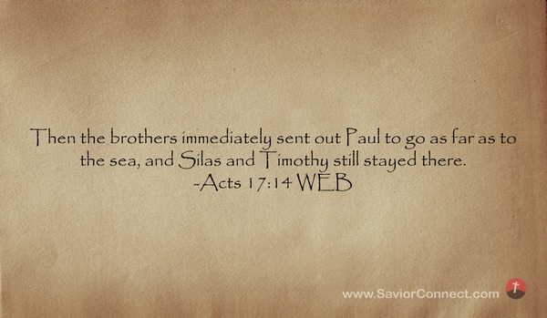 Then the brothers immediately sent out Paul to go as far as to the sea, and Silas and Timothy still stayed there. -Acts 17:14 WEB