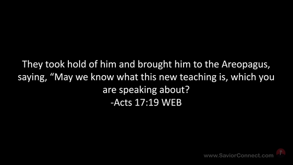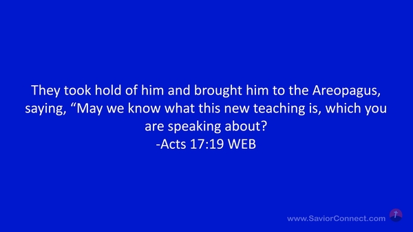 They took hold of him and brought him to the Areopagus, saying, “May we know what this new teaching is, which you are speaking about? -Acts 17:19 WEB