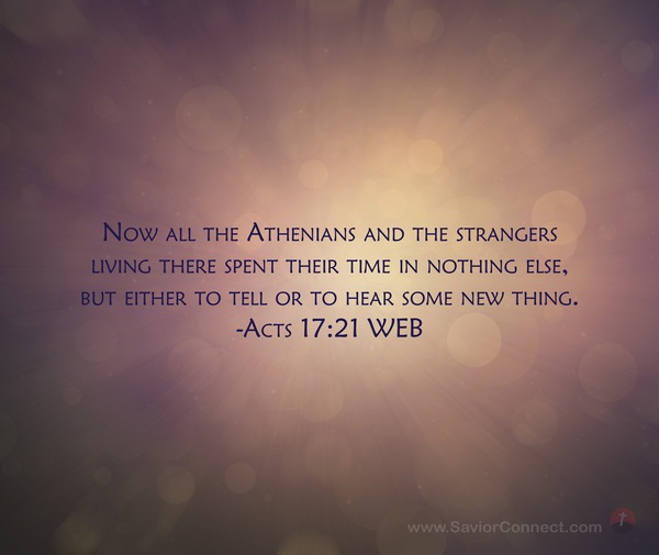 Now all the Athenians and the strangers living there spent their time in nothing else, but either to tell or to hear some new thing. -Acts 17:21 WEB