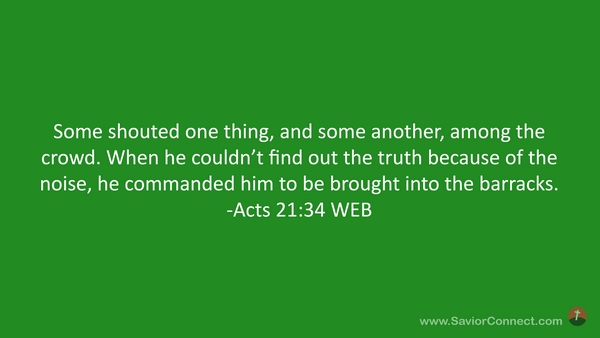 Some shouted one thing, and some another, among the crowd. When he couldn’t find out the truth because of the noise, he commanded him to be brought into the barracks. -Acts 21:34 WEB