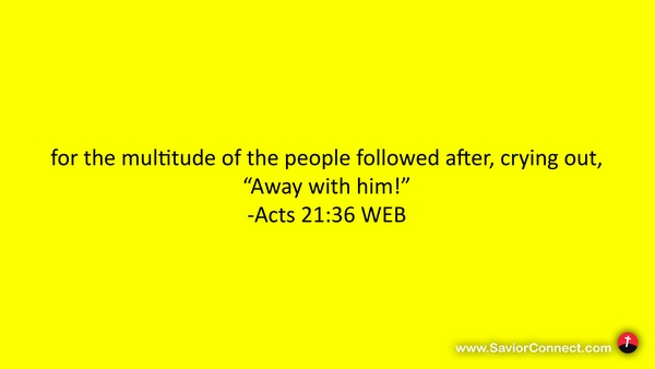 for the multitude of the people followed after, crying out, “Away with him!” -Acts 21:36 WEB