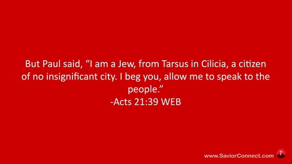 But Paul said, “I am a Jew, from Tarsus in Cilicia, a citizen of no insignificant city. I beg you, allow me to speak to the people.” -Acts 21:39 WEB