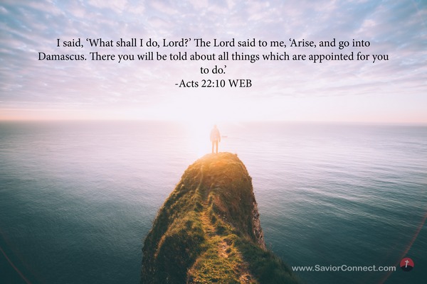 I said, 'What shall I do, Lord?’ The Lord said to me, 'Arise, and go into Damascus. There you will be told about all things which are appointed for you to do.’ -Acts 22:10 WEB