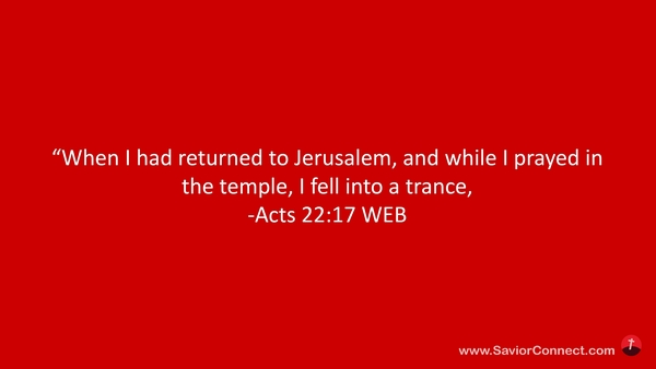 “When I had returned to Jerusalem, and while I prayed in the temple, I fell into a trance, -Acts 22:17 WEB