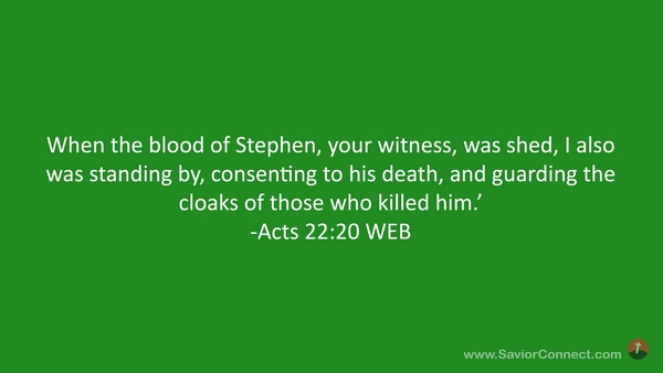 When the blood of Stephen, your witness, was shed, I also was standing by, consenting to his death, and guarding the cloaks of those who killed him.’ -Acts 22:20 WEB