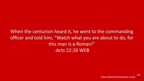 When the centurion heard it, he went to the commanding officer and told him, “Watch what you are about to do, for this man is a Roman!” -Acts 22:26 WEB