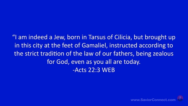 “I am indeed a Jew, born in Tarsus of Cilicia, but brought up in this city at the feet of Gamaliel, instructed according to the strict tradition of the law of our fathers, being zealous for God, even as you all are today. -Acts 22:3 WEB