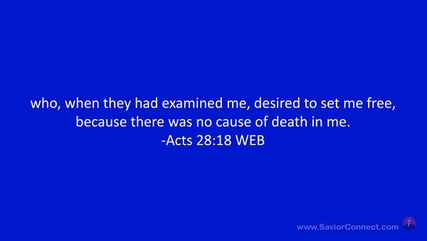 who, when they had examined me, desired to set me free, because there was no cause of death in me. -Acts 28:18 WEB