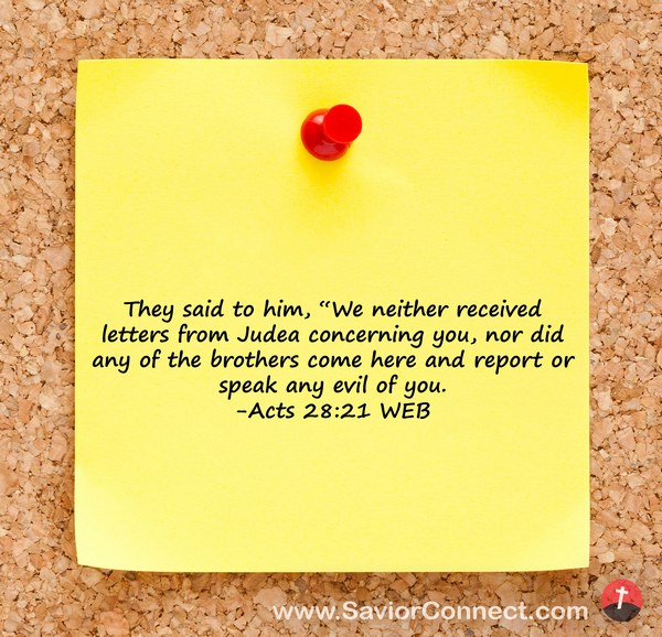 They said to him, “We neither received letters from Judea concerning you, nor did any of the brothers come here and report or speak any evil of you. -Acts 28:21 WEB