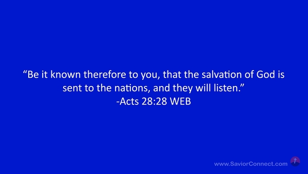 “Be it known therefore to you, that the salvation of God is sent to the nations, and they will listen.” -Acts 28:28 WEB